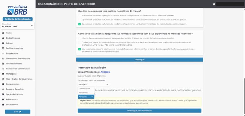 A identificação do Perfil de Investimentos e a assinatura do Termo de Opção poderá ser feita exclusivamente pelo Portal do Participante, disponível no website www.previdenciabrb.org.br