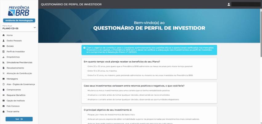 Atendendo a diversas solicitações de participantes, a Previdência BRB informa que reabriu, excepcionalmente até 31/01/2026, a janela de opção para a escolha do Perfil de Investimentos aos participantes dos planos CD-05 e BrasíliaPrev.